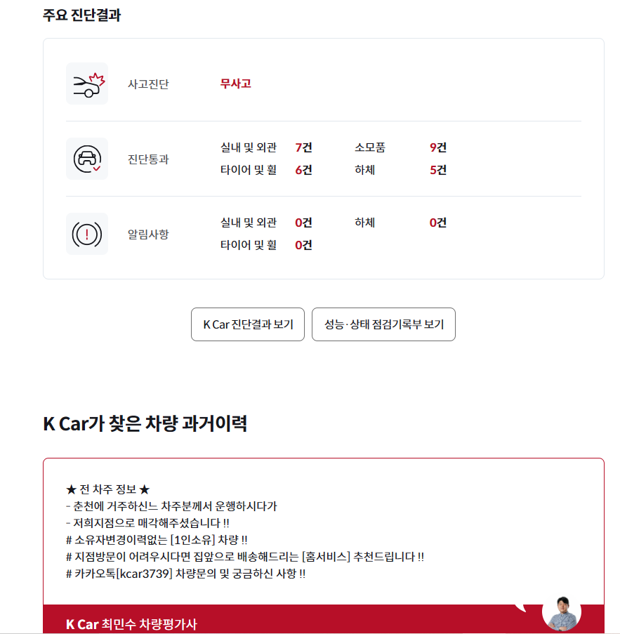 - K Car의 전문 차량평가사의 진단 결과