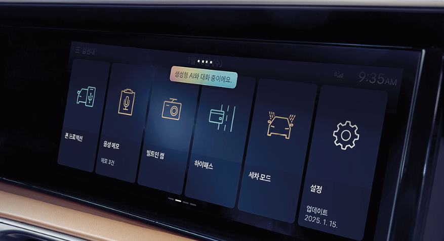현대자동차의 생성형 AI를 적용하여 스마트폰처럼 음성 명령으로 다양한 차량 기능을 제어할 수 있고 정보를 제공 받을 수 있습니다.