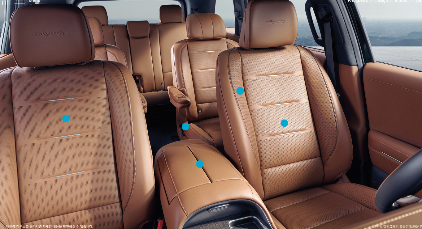 2025 팰리세이드는 Exclusive(익스클루시브), Prestige(프레스티지), Calligraphy(캘리그래피) 3가지 옵션사양이 있으며 각각은 추가적인 선택 품목 옵션 추가에 따라 가격이 달라질 수 있습니다.