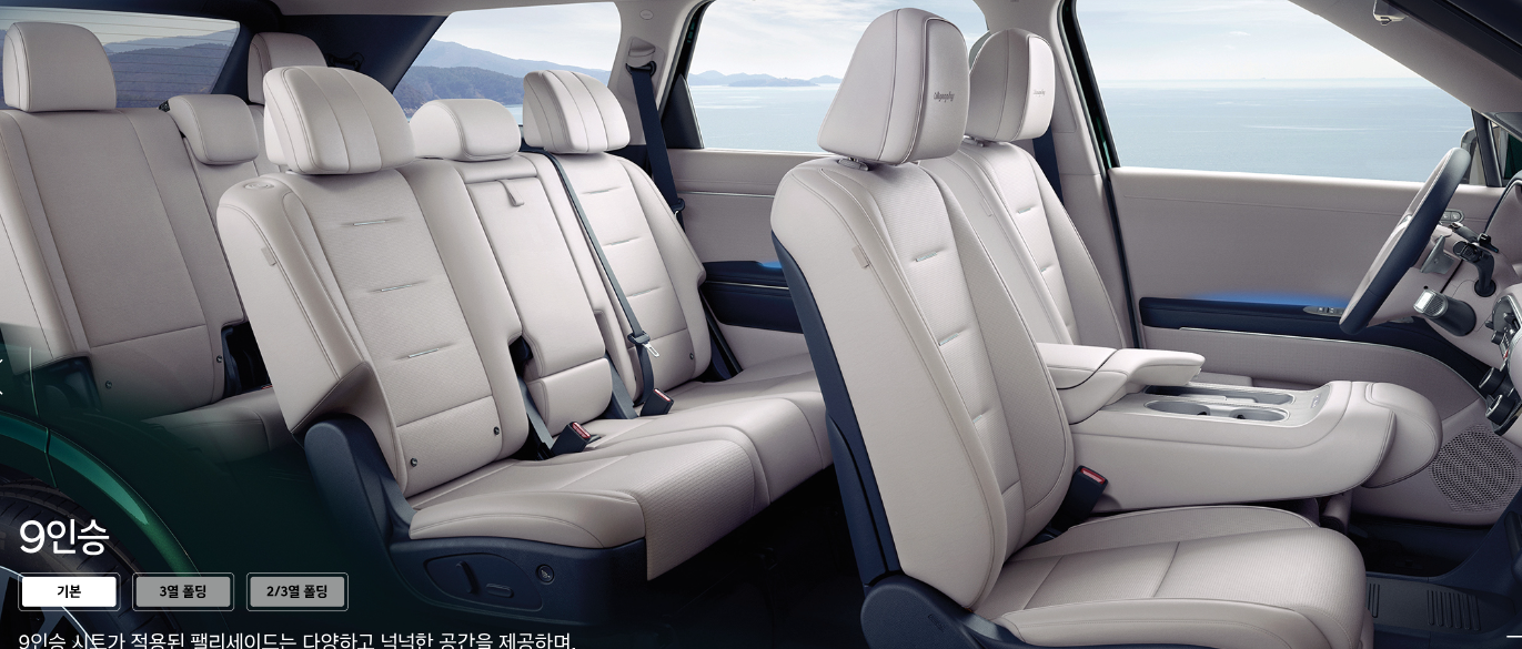 2025 팰리세이드 하이브리드는 7인승, 9인승 두 가지 타입이 있으며 두 가지 타입 모두 2열과 3열 좌석을 폴딩하여 넓은 공간을 사용할 수 있는 장점이 있습니다.