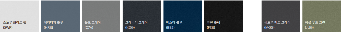 2025 스포티지 외관 색상은 총 8가지로, 그중 쉐도우 매트 그레이와 정글 우드 그린 색상은 X-Line 전용 색상입니다.