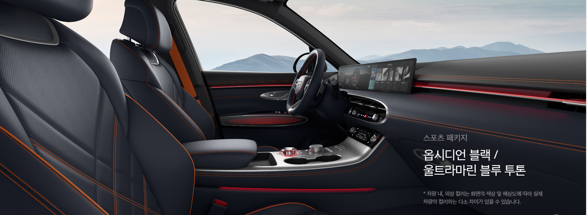 제네시스 GV70의 실내 내장 색상은 스탠다드 모델과 스포츠 패키지 모델이 다르게 적용됩니다.